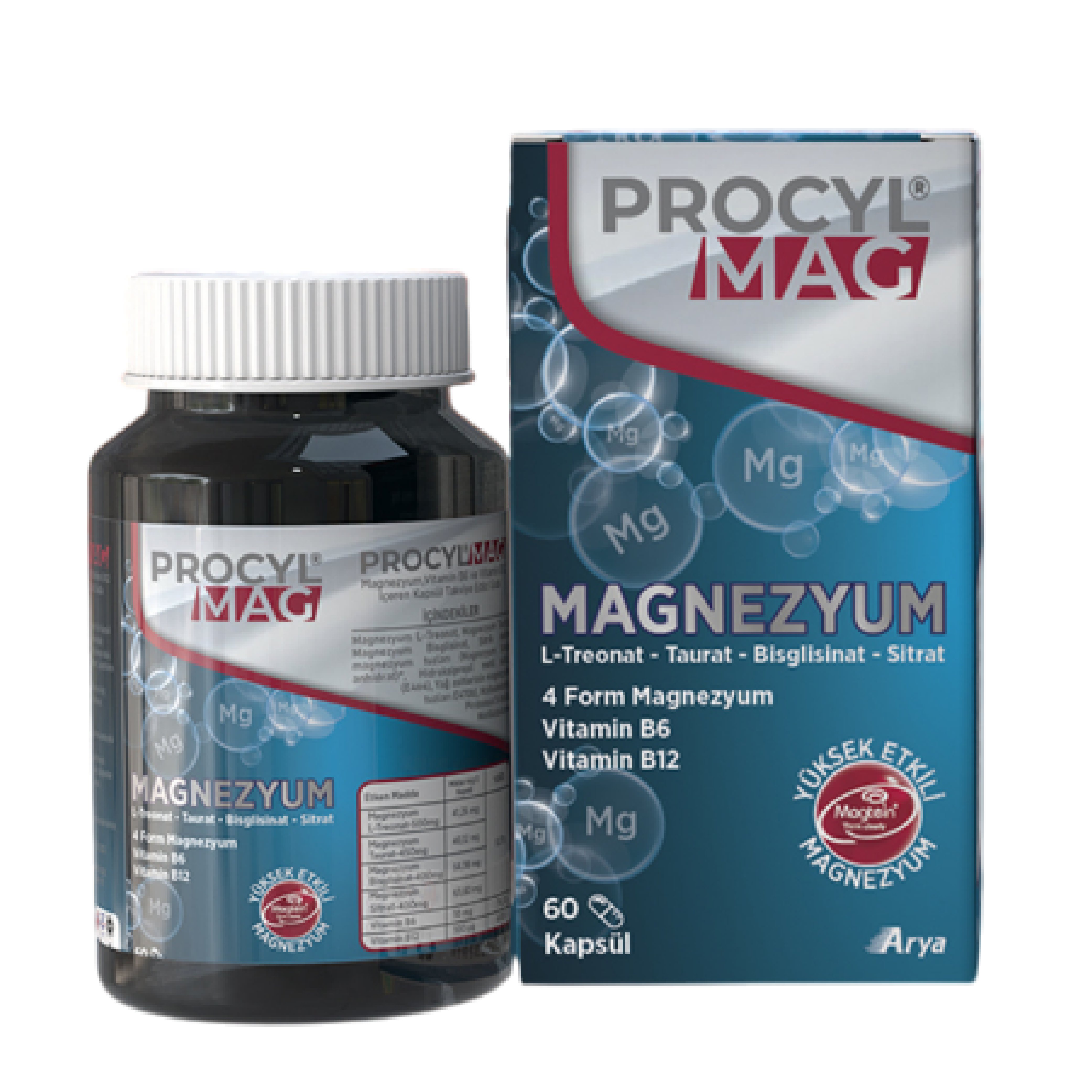 Procyl Mag is a food supplement containing four different highly bioavailable magnesium forms (L-threonate, taurate, bisglycinate, citrate) that supports the nervous system, muscle functions and general energy metabolism. This formulation is also enriched with vitamins B6 and B12, providing additional support for nervous system health and immune function.
